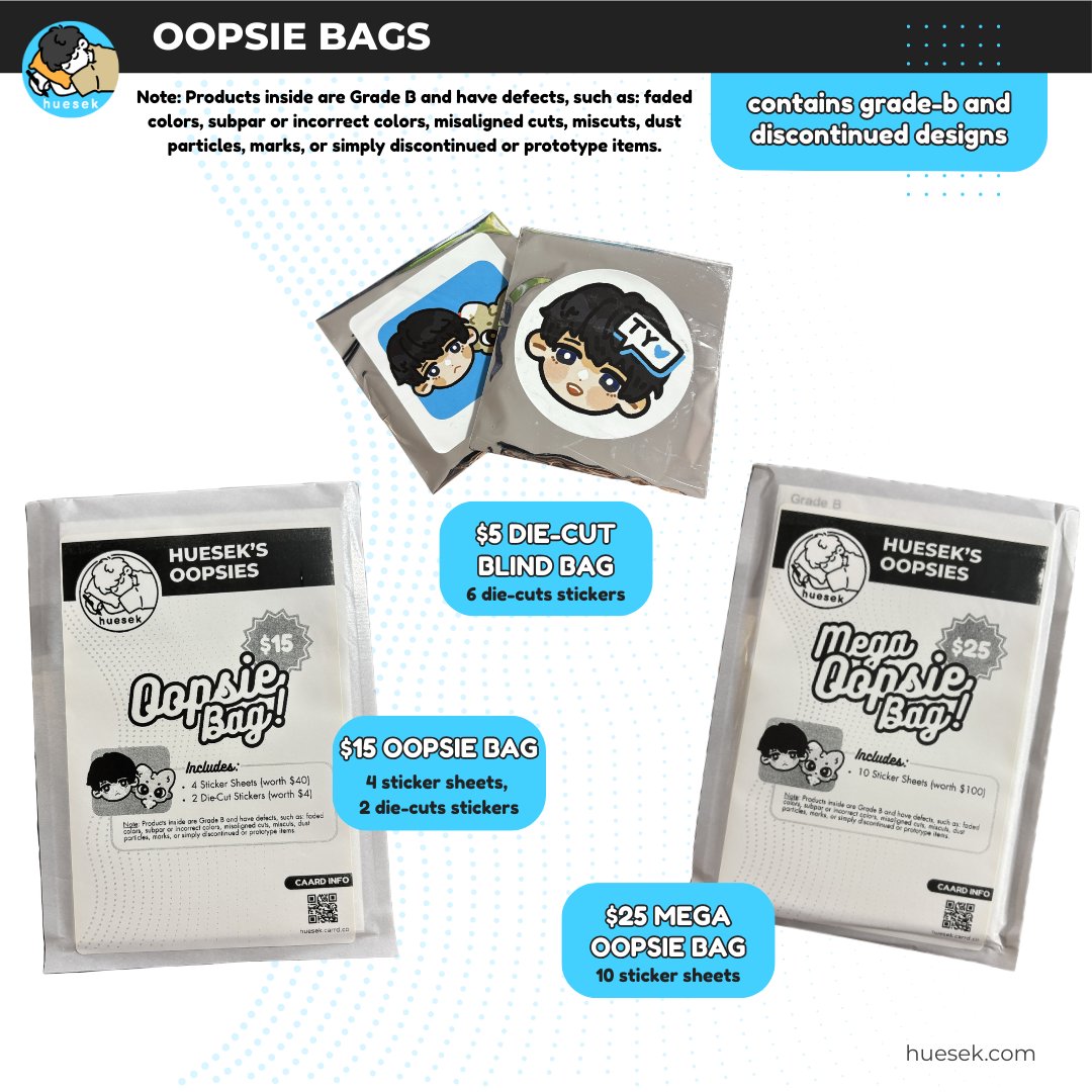 $15 Oopsie Bag - Includes Four (4) Random Sticker Sheets, Two (2) Random Die-Cut Stickers