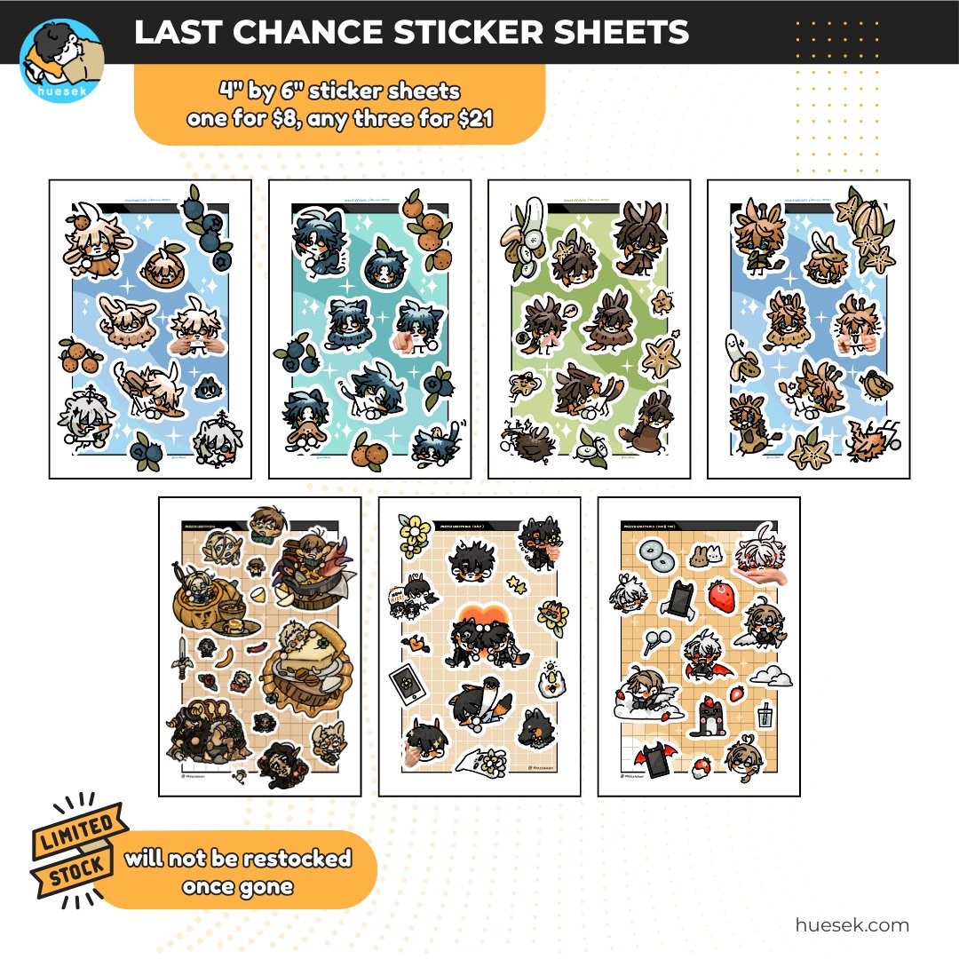 LAST CHANCE | Dungeon Meshi, Genshin Impact, ORV, NijisanjiJP ✦ Sticker Sheet